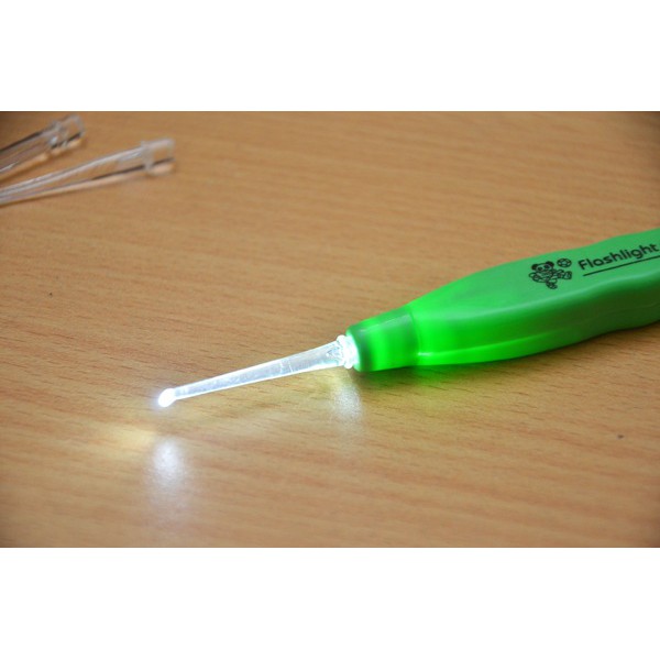 - Bộ dụng cụ lấy ráy tai với thiết kế nhỏ, gọn, có đầu dò được gắn thêm đèn led với ánh sáng màu trắng xanh sẽ giúp bạn nhìn rõ hơn vào sâu bên trong tai.
