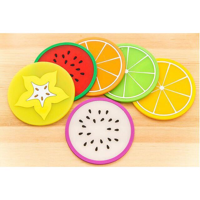 - Miếng lót ly hình trái cây nhựa dẻo xinh xắn với chất liệu nhựa bền đẹp, giúp cho chiếc bàn làm việc luôn khô ráo, sạch sẽ tô điểm không gian thêm tươi tắn và sinh động hơn mỗi ngày.- Thiết kế với nhiều họa tiết khác nhau.