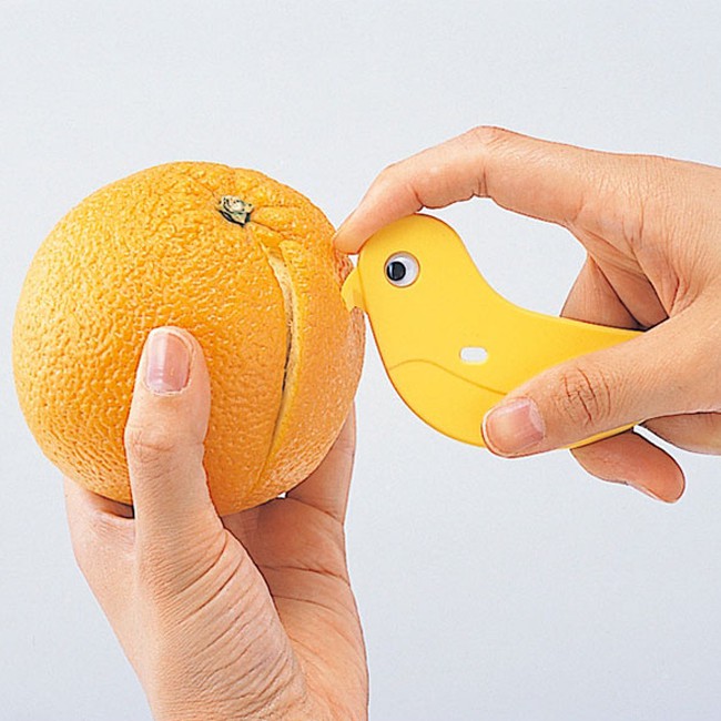 Sử dụng rất đơn giản: chỉ cần ấn cái mỏ con chim (vỏ cam dày) hoặc phần đuôi cánh (vỏ cam mỏng) xuống lớp vỏ quả cam và kéo xuống theo đường thẳng. Dùng phần đuôi để tách vỏ cam ra Cứ làm như thế cho đến khi tước hết vỏ cam.