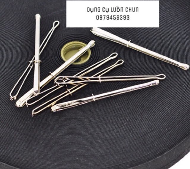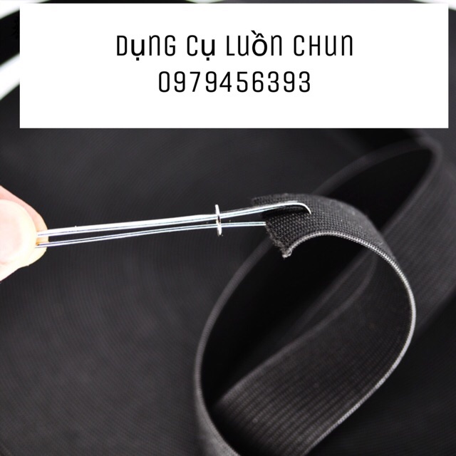 Dụng cụ luồn chun giúp cho chúng ta luồn chun dễ dàng hơn bao giờ hết.Cách sử dụng: đẩy vòng tròn xuống dưới, sau đó kẹp chun vào, đẩy vòng tròn lên đến khi dụng cụ kẹp chặt chun.
