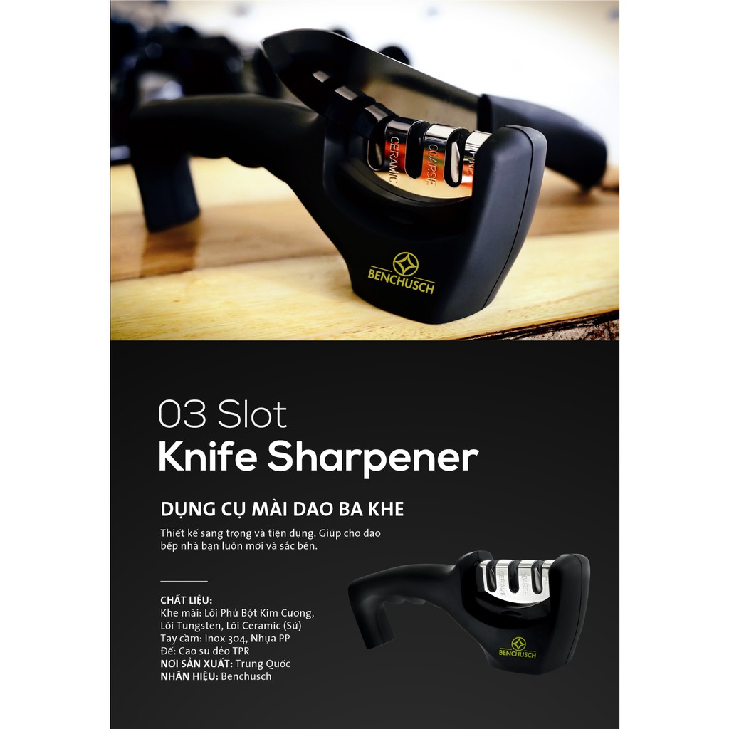 ***Dụng cụ mài dao ba khe Benchusch vơi thiết kế sang trọng và độc đáo giúp giữ cho dao bếp nhà bạn luôn sắc bén, luôn sẵn sàng để bạn trổ tài nấu nướng của mình.