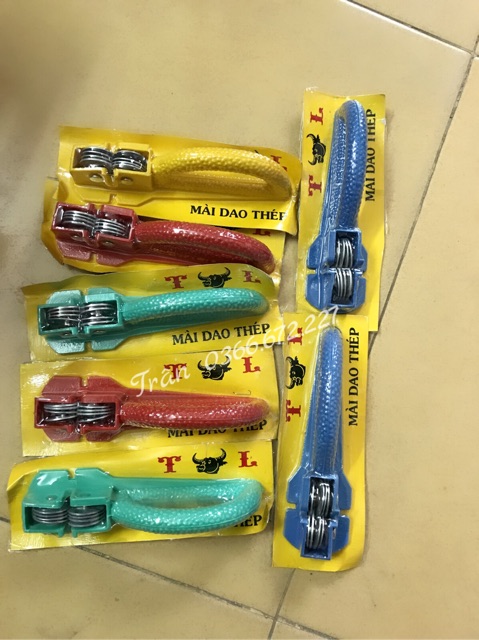 Dụng cụ mài dao cầm tay gọn gàng tiện lợi cho căn bếp nhà bạn:* Màu sắc: cam, vàng, xanh