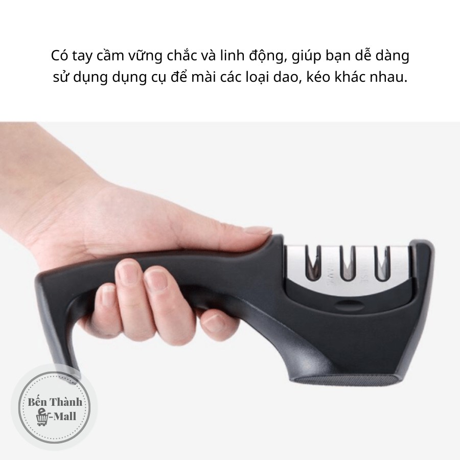 • Có tay cầm vững chắc và linh động, giúp bạn dễ dàng sử dụng dụng cụ để mài các loại dao, kéo khác nhau.