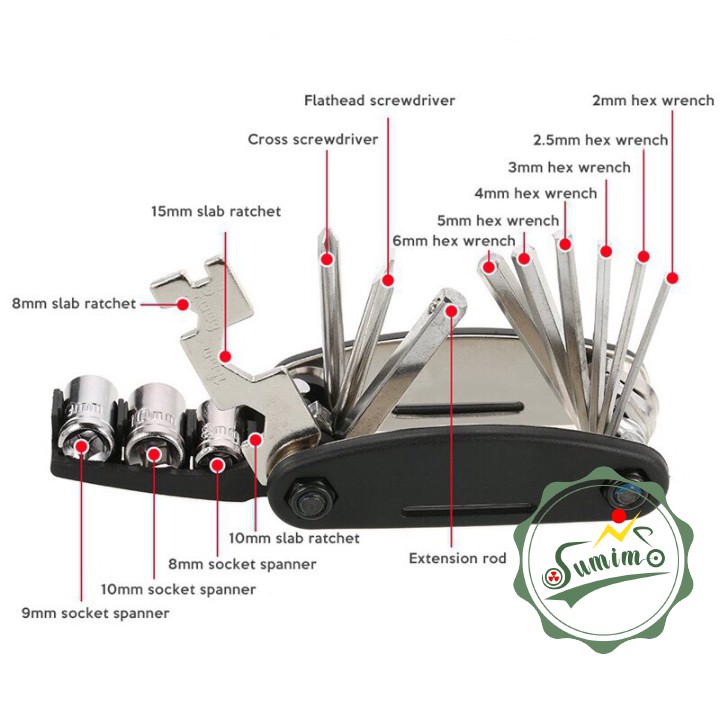 - Công dụng của bộ dụng cụ sửa chữa xe đạp đa năng gồm: Sửa chữa các loại phương tiện xe đạp, xe máy, ô tô và dùng làm dụng cụ sửa chữa trong nhà, dụng cụ sửa chữa khi đi cắm trại, đi phượt, đi tour, du lịch, trekking,.....