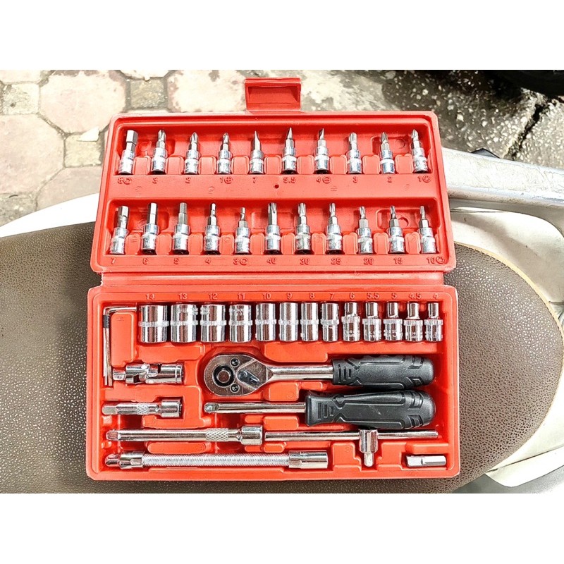 Nhà cửa & Đời sống > Dụng cụ & Thiết bị tiện ích > Dụng cụ > Hộp dụng cụ cầm tay || Bộ Dụng Cụ Mở Bu Lông Ốc Vít Đa Năng Sửa Chữa 46 Chi TiếtCòn hàng