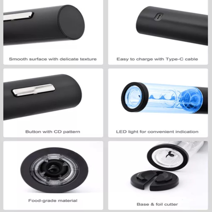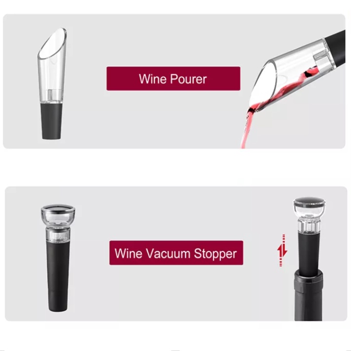Bộ dụng cụ mở chai vang tự động 4 trong 1 MGS-KP1-361901👉 Kích thước mở nắp chai vang: 48*215mm