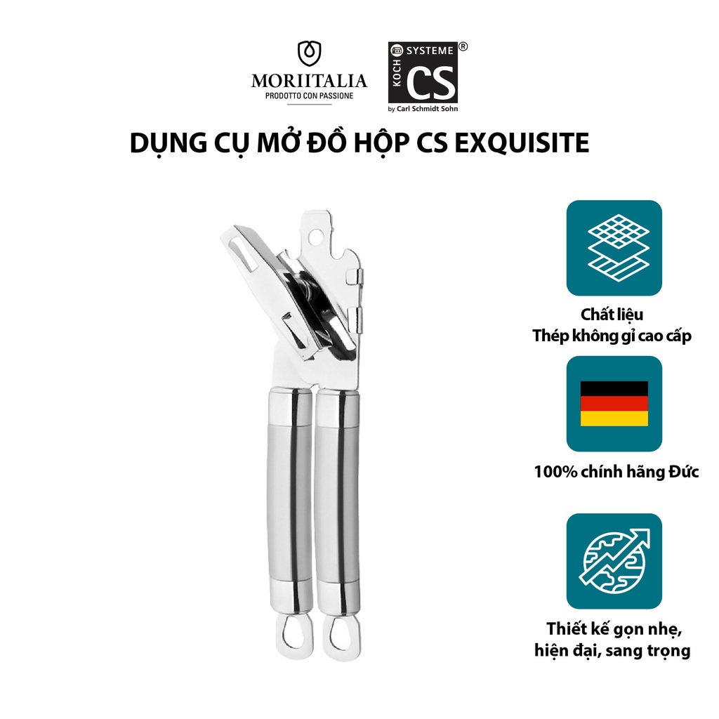 Dụng cụ mở đồ hộp CS Exquisite đa năng tiện lợi dễ dàng sử dụng Moriitalia 008673Nổi tiếng nước ĐỨC với các đồ dùng gia dụng nhà bếp an toàn và có giá trị. Ra đời hơn 100 năm đa dạng các mặt hàng luôn có chất liệu và chất lượng sản phẩm cao. Đồ dùng nhà bếp CS với thiết kế sang trọng, hiện đại kết hợp với chất liệu inox cao cấp, thép không gỉ