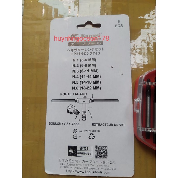 Quy cách:Gồm 6 cây từ 3mm đến 22mm
