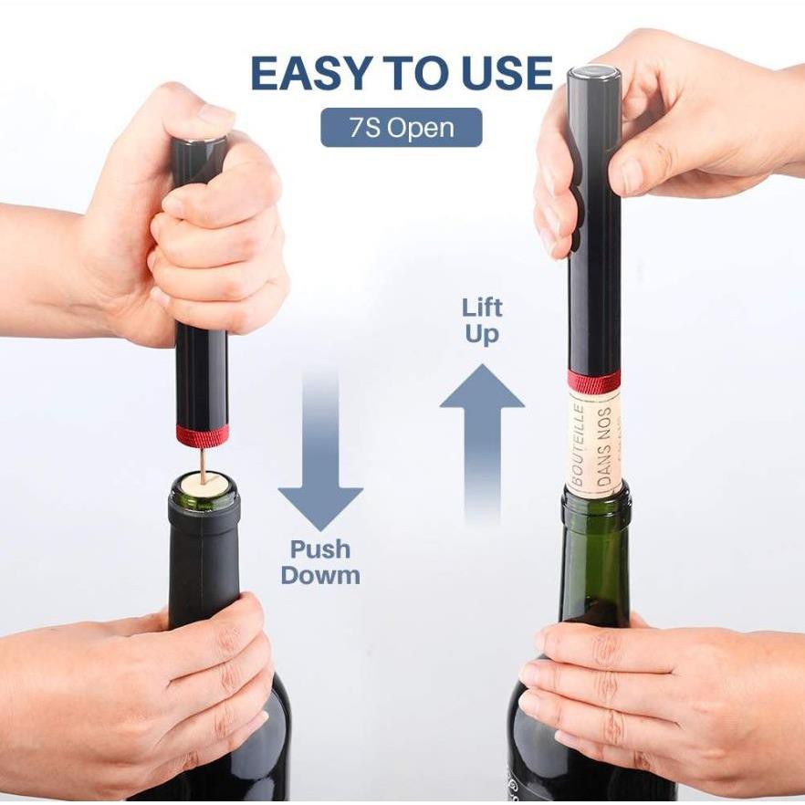 🔸Với lực hút chân không của dụng cụ mở rượu vang áp lực sẽ giúp bạn khui lắp chai rượu vang một cách đơn giản và nhẹ nhàng hơn bao giờ hết