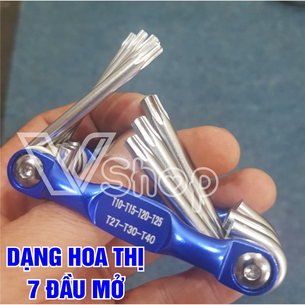 bộ hoa thị có 7 đầu, bộ lục giác có 8 đầu ( thông số ghi trên khung của sản phẩm, như trong hình )