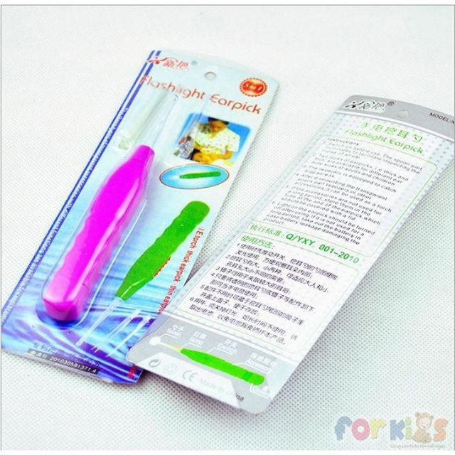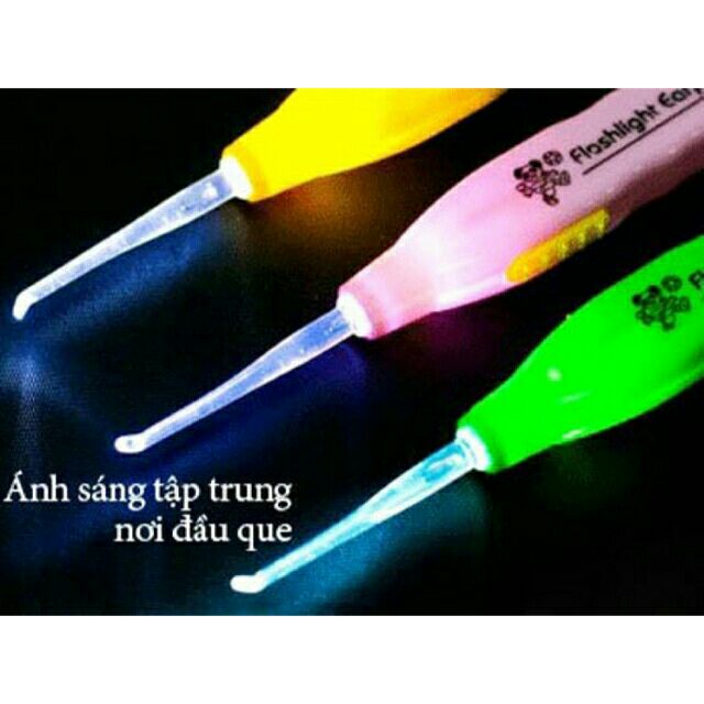 dụng cụ móc tai có đèn giúp cho người móc thấy được phần bên trong của tai, ánh sáng chiếu thẳng giúp thấy rõ hơnsản phẩm được làm từ nhựa an toàn