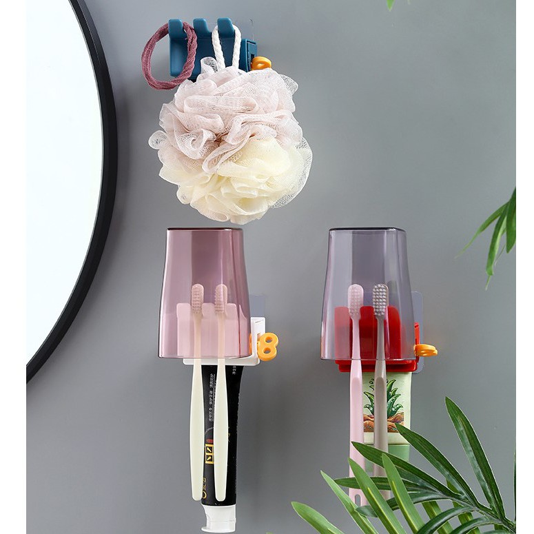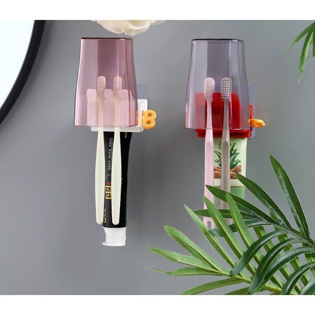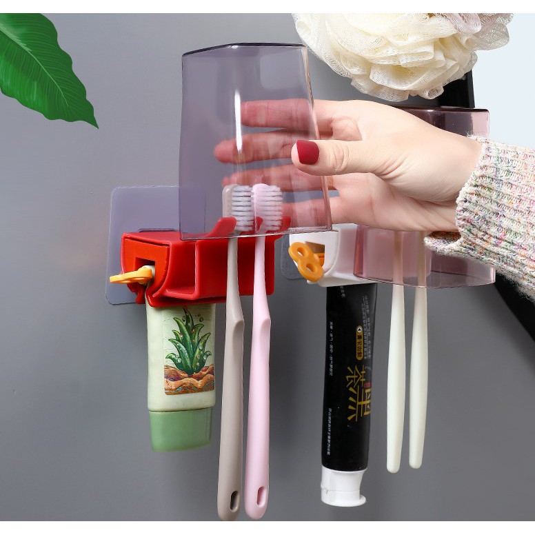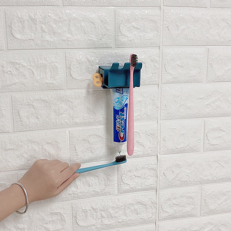Dụng Cụ Nặn Kem Đánh Răng Dán Tường Kiêm Giá Treo Bàn Chải 2 Trong 1