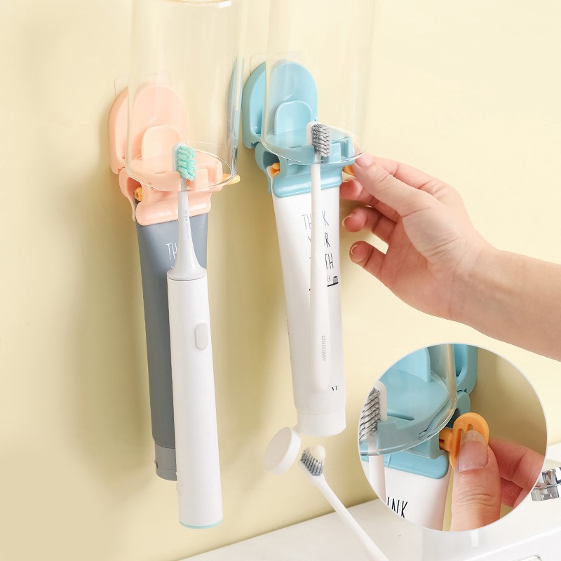 Dụng cụ nặn kem đánh răng dán tường kiêm giá treo bàn chải 2 trong 1