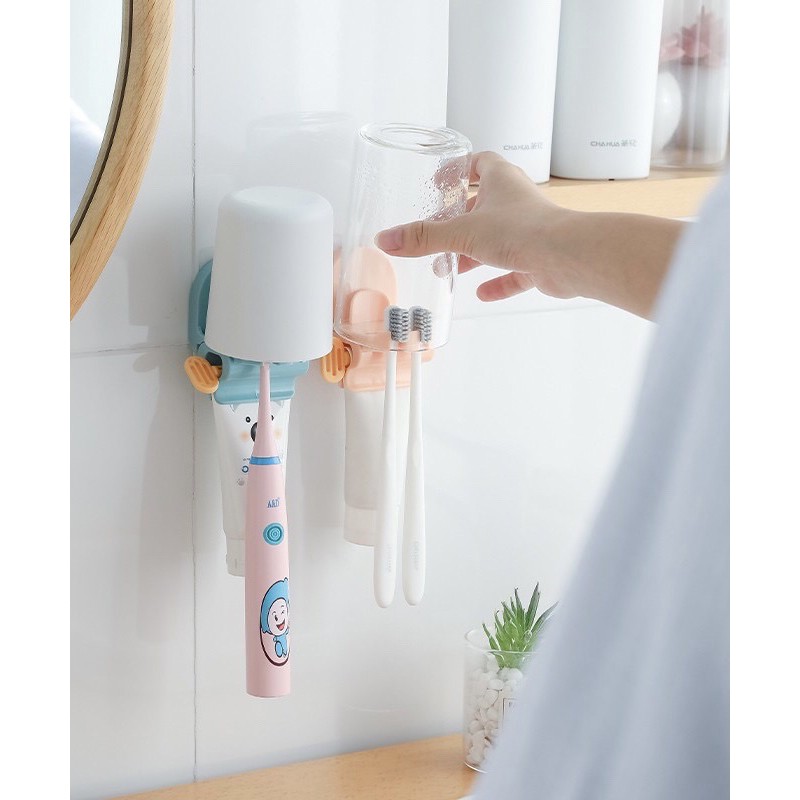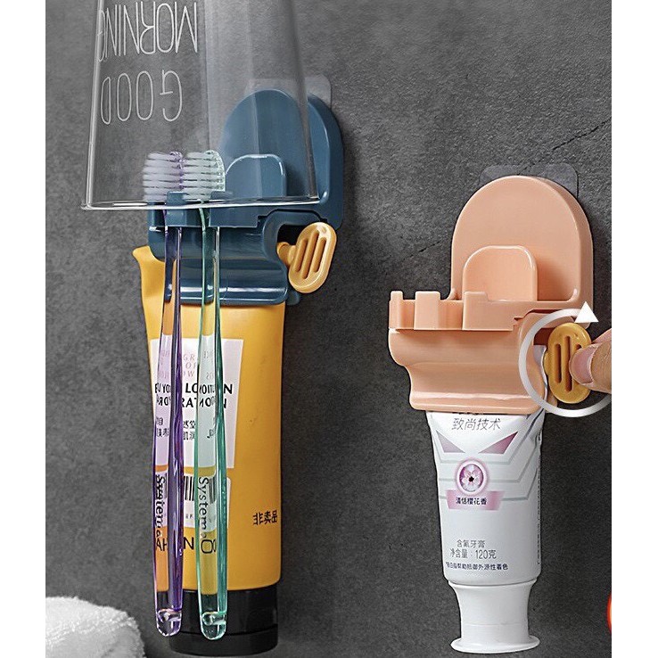 Dụng cụ nặn kem đánh răng dán tường có giá kẹp bàn chải đa năng (NKDT03)