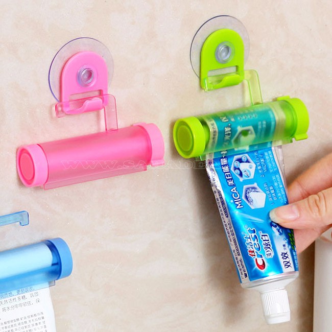 DỤNG CỤ KẸP, NẶN KEM ĐÁNH RĂNG BẰNG TAY SUCKER NHIỀU MÀU CHẤT LIỆU NHƯA CAO CẤP KÈM MÓC TREO HÍT TƯỜNG