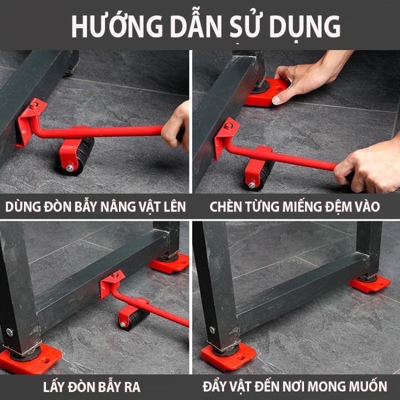 BỘ DỤNG CỤ NÂNG VÀ DI CHUYỂN ĐỒ THÔNG MINH:- Hỗ trợ di chuyển vật dụng nặng: tủ lạnh, két sắt, tủ, giường,....tiết kiệm thời gian, nhân lực, tăng năng suất lao động. Giảm các nguy cơ chấn thương, tai nạn nghề nghiệp không đáng có.