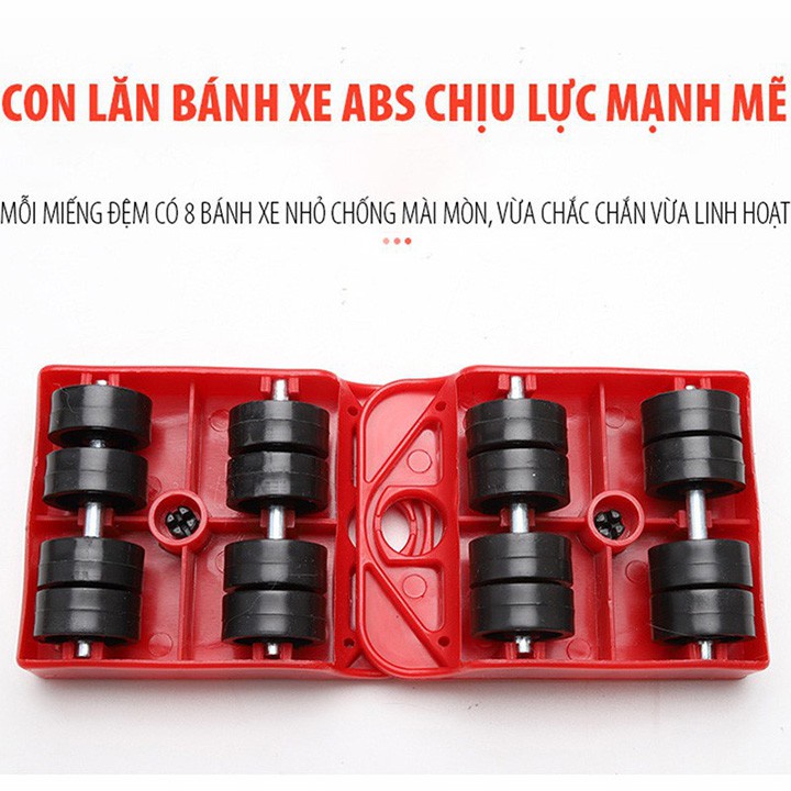 - Bộ sản phẩm bao gồm một tay nâng và hệ 4 con lăn. Tay nâng được làm từ chất liệu thép siêu cứng và siêu bền. Con lăn với các bánh xe được làm từ nhựa ABS chịu lực cao, có khả năng xoay 360 độ giúp bạn dễ dàng di chuyển vật dụng đến đúng vị trí mình mong muốn..