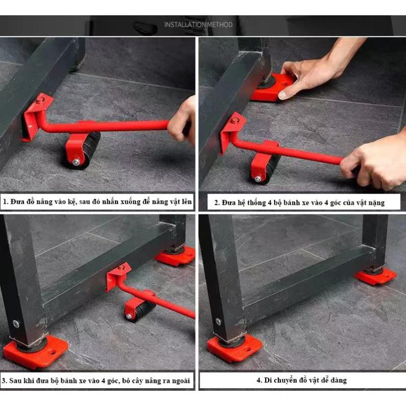 - Đặt 4 bánh xe vào 4 góc ( chịu được lực là 150-200kg) và nhẹ nhàng đẩy đồ.