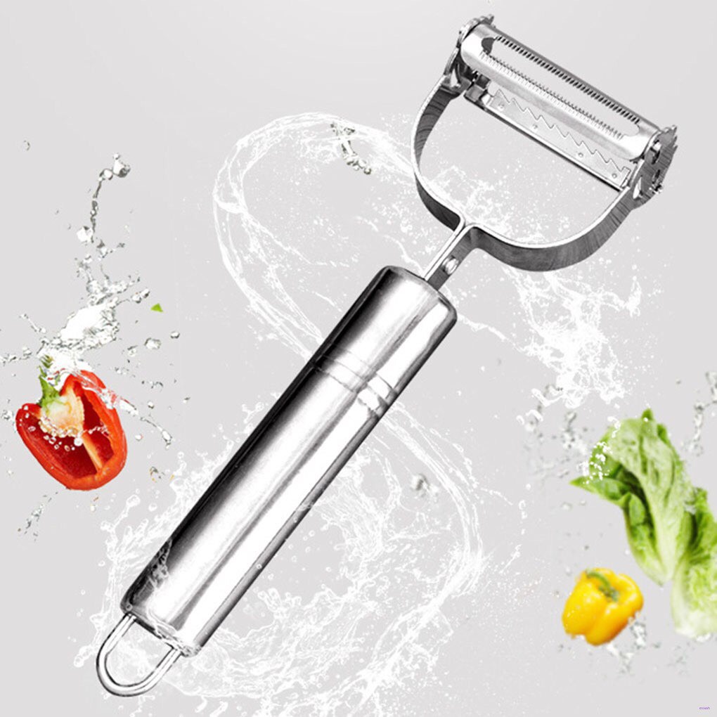 Dụng Cụ Gọt Nạo Bào Củ Quả Thành Sợi Đa Năng Bằng Thép Inox Không Gỉ- Nạo gọt rau củ quả inox 2 đầu đa năng dành cho gia đình 1 đầu gọt vỏ - 1 đầu nạo sợi gọt sắc đa năng inox dùng siêu bền