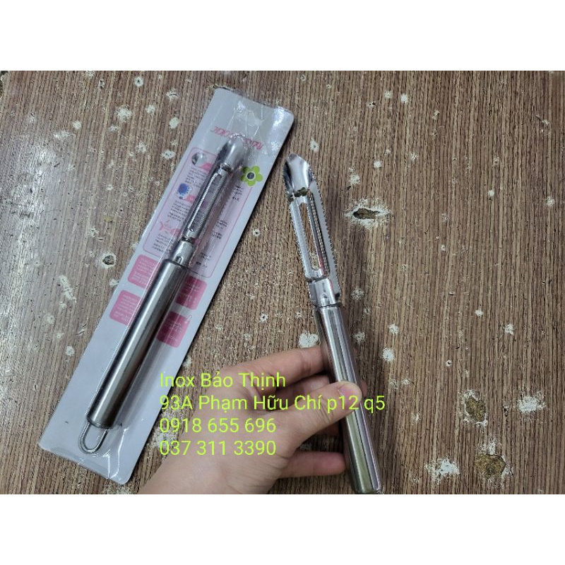 - Dụng cụ bào sợi và gọt vỏ củ quả đa năng kiểu mới được thiết kế ưu việt hơn, sử dụng thép không gỉ 100% phần đầu gọt và tay cầm, kéo dài thời gian sử dụng, khó bị hỏng. Phần gọt vỏ và bào sợi 2 bên tách biệt đảm bảo vệ sinh và rất nhỏ gọn, thiết kế lưỡi gọt hướng bên trong nên rất an toàn cho chị em làm bếp. Phía tay cầm dài và chắc chắn, kèm thêm phần móc treo lên khi không sử dụng, đảm bảo vệ sinh và không gây han gỉ.
