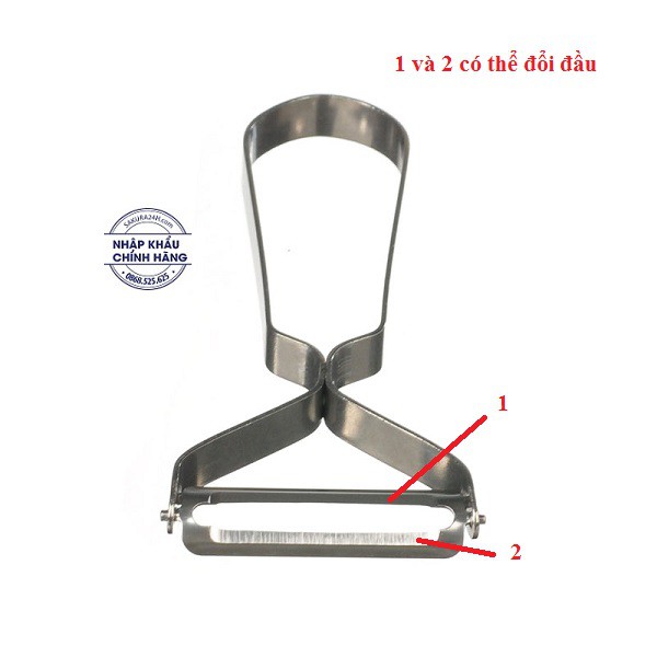 - Công dụng: Lưỡi dụng cụ gọt có thể xoay tròn luân phiên 2 đầu. Dụng cụ dùng để gọt vỏ hoặc bào các lát mỏng củ quả.