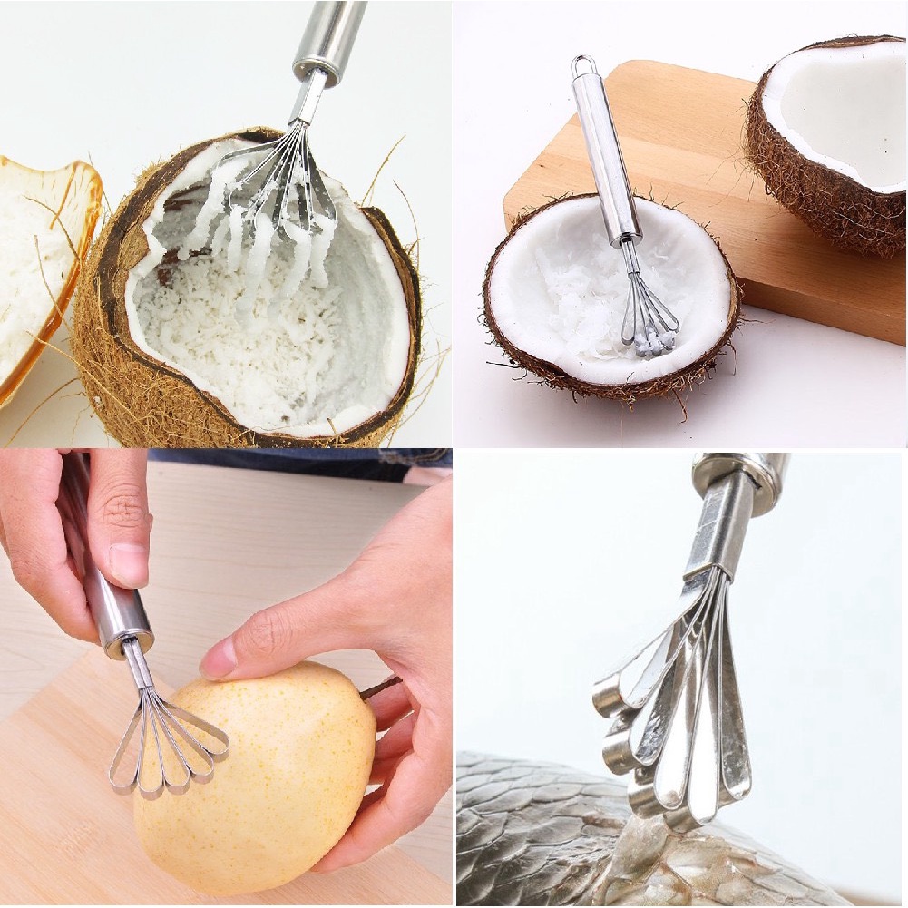 - Đặc biệt Dụng cụ nạo dừa đánh vảy cá 2 trong 1 với các vòng cung nối nhau chắc chắn nên khi nạo dừa sẽ cho ra những sợi dừa đều và đẹp mắt. Khi đánh vẩy cá cũng không cần dùng sức nhiều, không cần ra hàng mà đánh vẩy lại nhanh gọn hơn