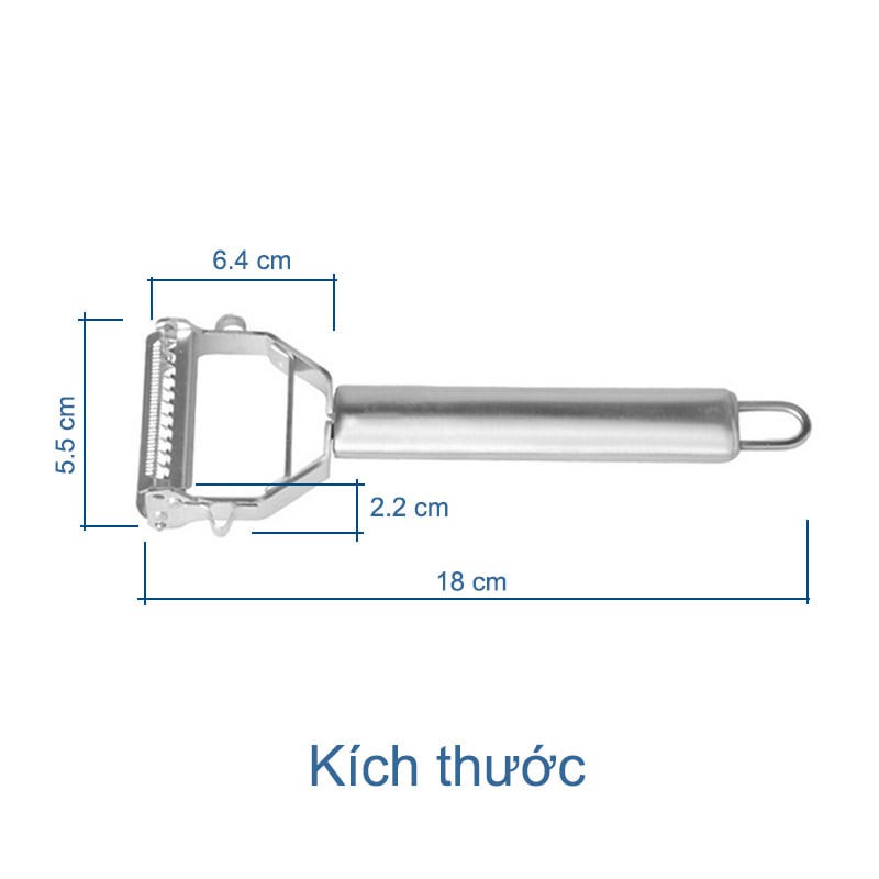 - Sản phẩm tích hợp 2 lưỡi chính: để gọt (nạo) vỏ rau, củ, quả và bào (nạo sợi) rau, củ, quả thành sợi nhỏ.