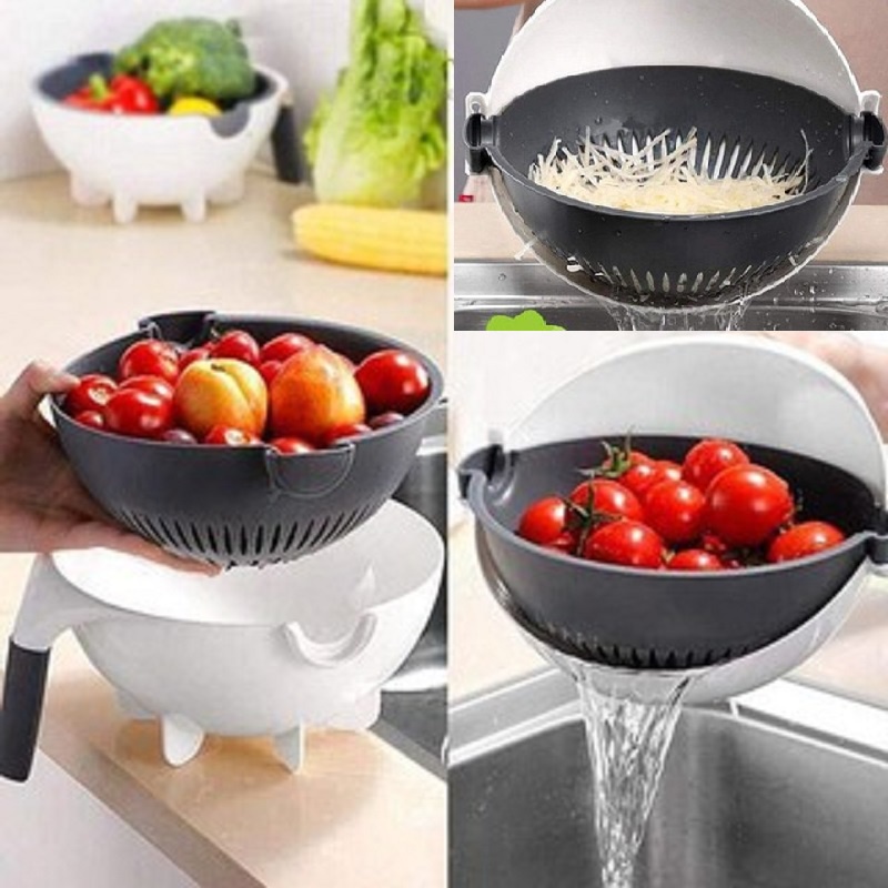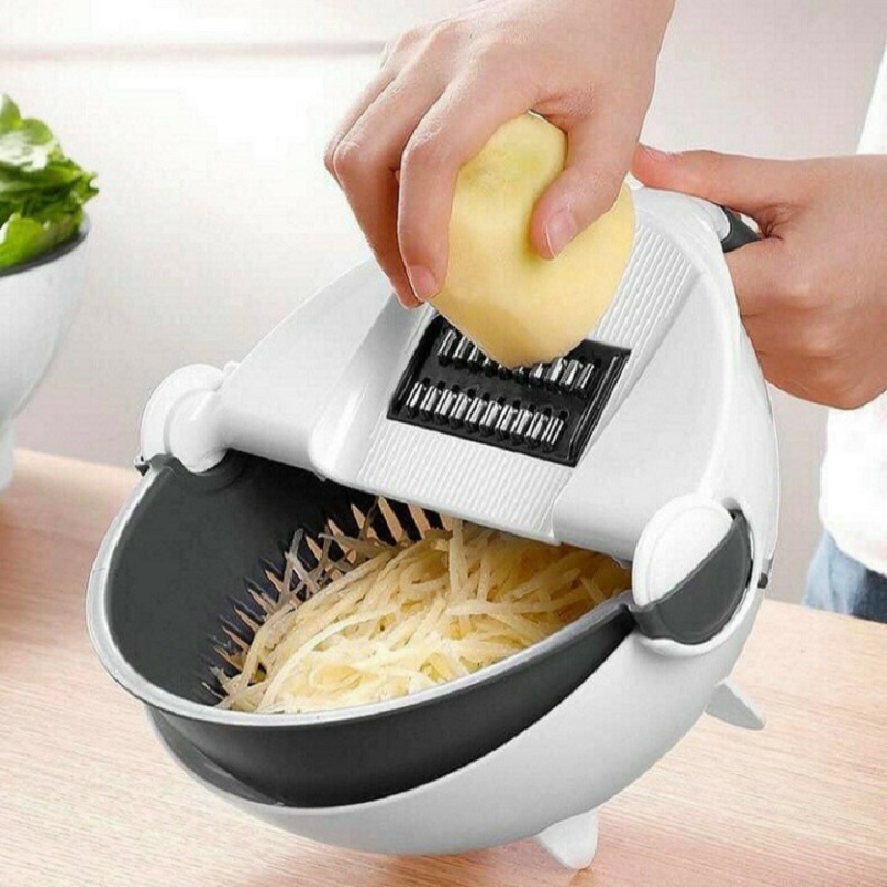 Bộ Dụng Cụ Nạo Gọt Và Bào Sợi Củ Quả Đa Năng 9 Trong 1 Kèm Rổ, Chậu + 7 Chi Tiết Thông Minh