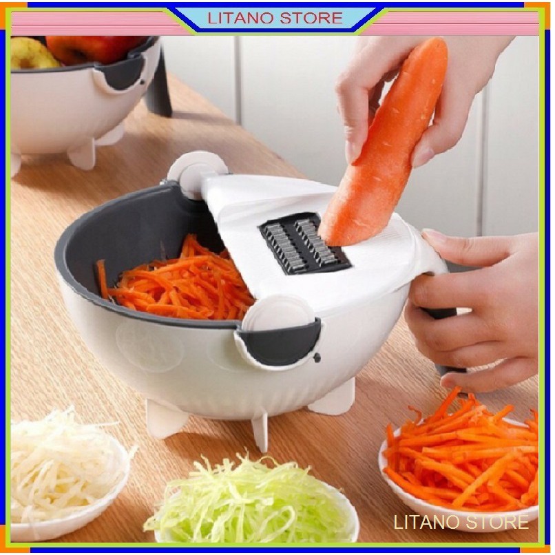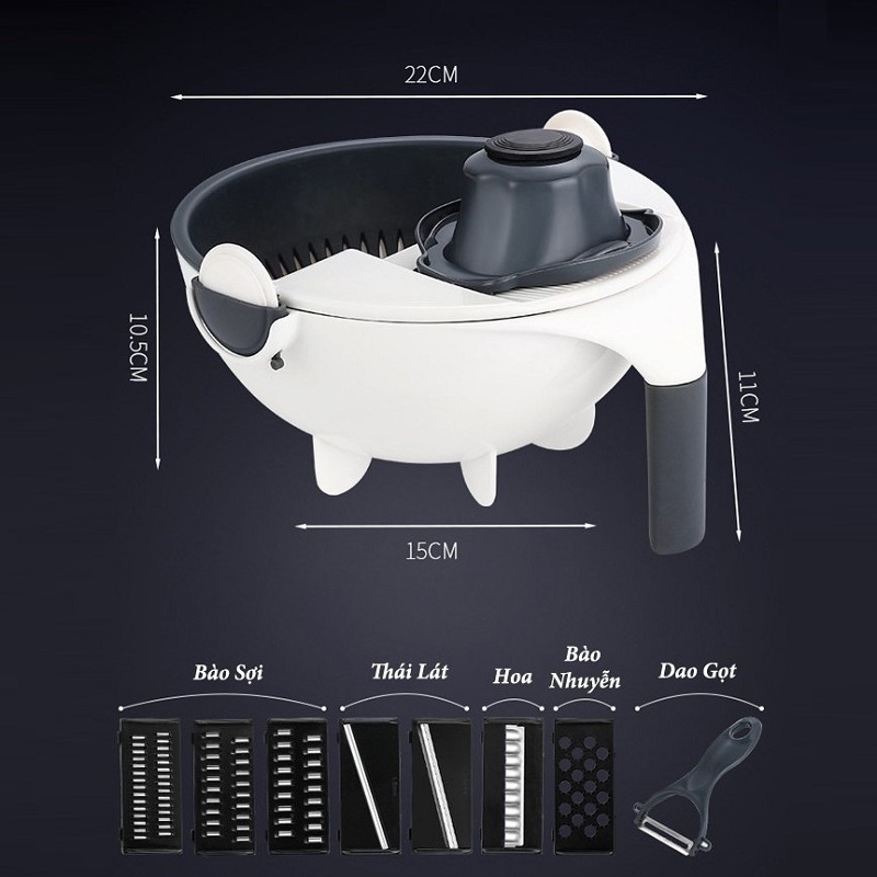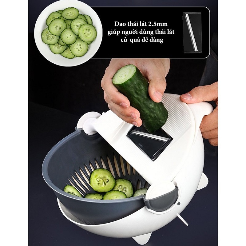 - Thiết kế thông minh, nhỏ gọn và nhiều chức năng với cấu tạo gồm: lưỡi gọt (nạo) vỏ củ quả (củ khoai tây, bầu, bí, cà rốt, mướp, susu…); lưỡi bào (cắt) củ quả thành sợt nhỏ (Bào cà rốt, đu đủ, dừa…); rổ hứng rửa xoay 360 độ không lo bị rơi ra ngoài… giúp việc chế biến các món ăn thật đơn giản và dễ dàng và đẹp mắt. Tay cầm bằng nhựa chất lượng cao, giúp sản phẩm chắc chắn và rất bền, an toàn, dễ cầm, dễ sử dụng.
