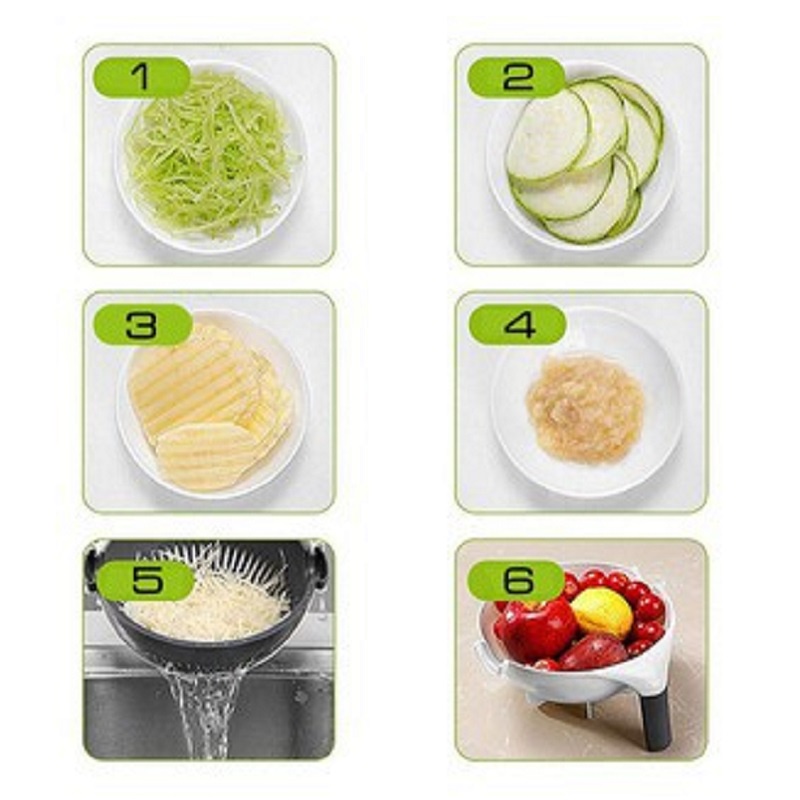 Nhà cửa & Đời sống > Dụng cụ nhà bếp > Bàn nạo, dụng cụ bào, cắt || Bộ Dụng Cụ Nạo Gọt Và Bào Sợi Củ Quả Đa Năng 9 Trong 1 Kèm Rổ, Chậu + 7 Chi Tiết Thông MinhCòn hàng