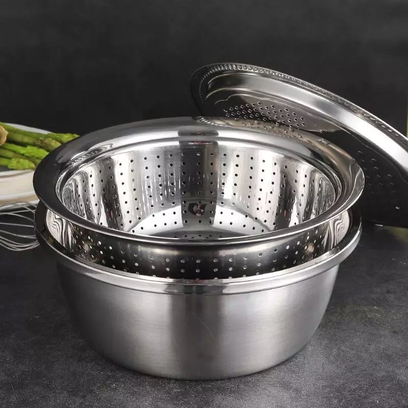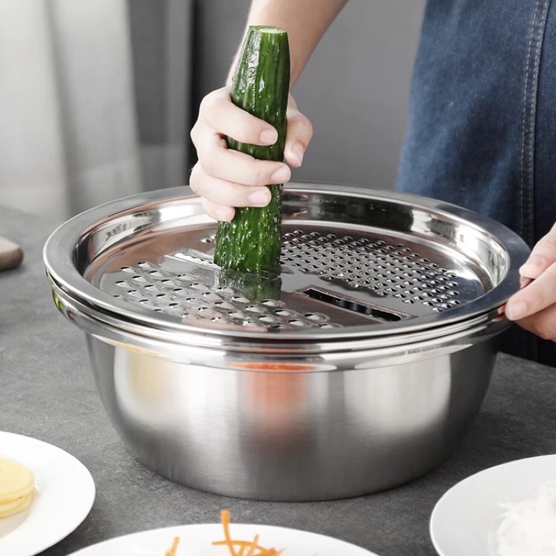 - Bộ bao gồm : 01 Mặt nạo nhiều kiểu, 01 Rổ inox, 01 Chậu inox 100% cao cấp dày dặn