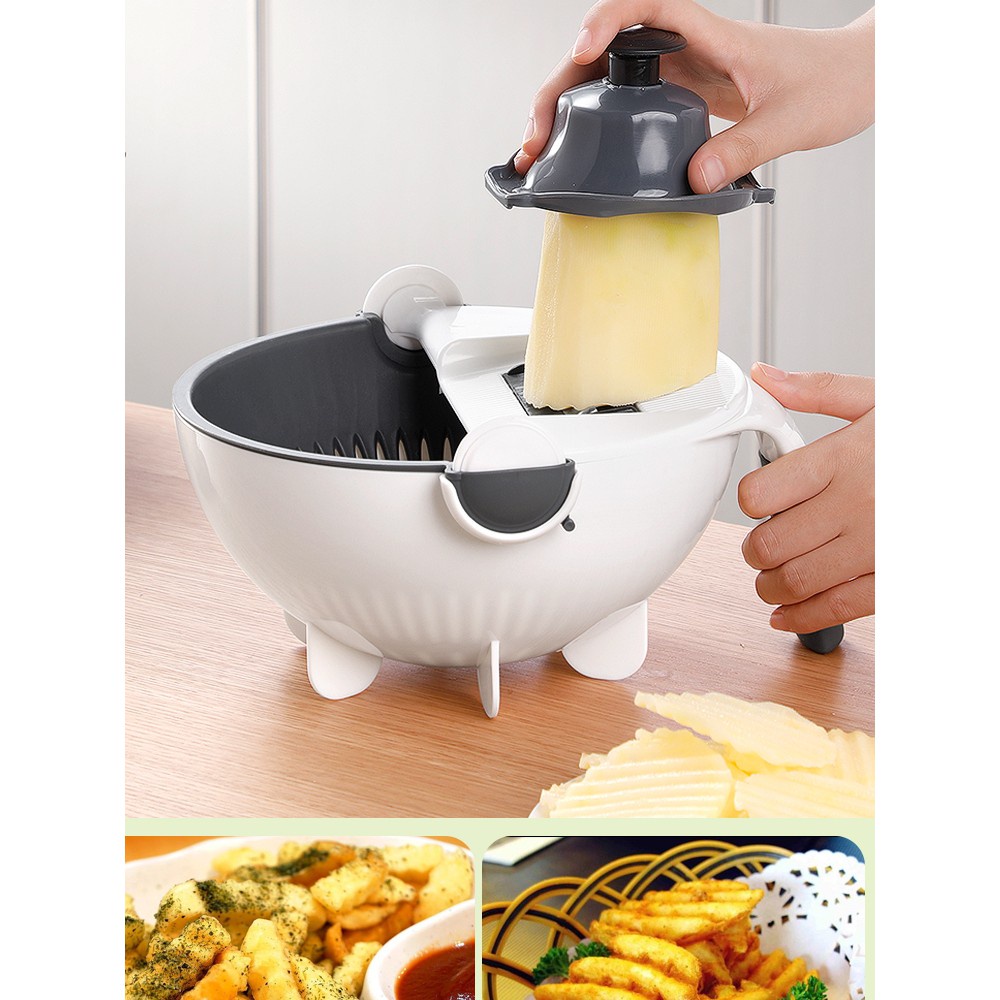 Xuất xứ : Trung Quốc Sản phẩm bao gồm 7 chi tiết đi kèm với Rổ Đựng và Chậu- Bào rau củ quả Bộ dụng cụ nạo rau củ đa năng là sản phẩm hữu ích với các chị em nội trợ, giúp công việc chế biến món ăn trở nên dễ dàng, nhanh chóng hơn nhiều.
