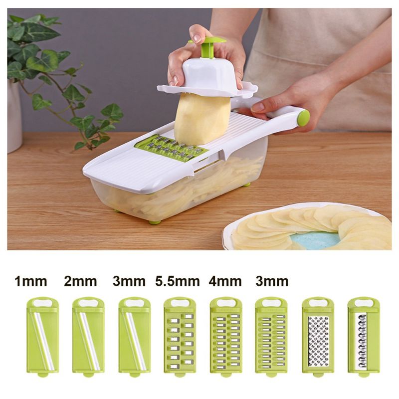 Nhà cửa & Đời sống > Dụng cụ nhà bếp > Bàn nạo, dụng cụ bào, cắt || Dụng Cụ Nạo Rau Củ Quả Đa Năng Có Khay Đựng và 8 Lưỡi Nạo Thay Thế - Dao Bào Sợi Rau Củ Siêu NhanhCòn hàng