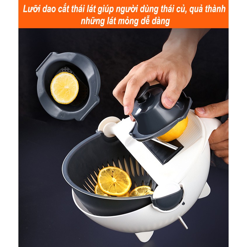 Bộ Dụng Cụ Thông Minh Nạo Rau - Củ - Quả Kèm Rổ 9 Trong 1 Đa Năng- Bộ Dụng Cụ Thông Minh Nạo Rau - Củ - Quả Kèm Rổ 9 Trong 1 Đa Năng thiết kế thông minh, nhỏ gọn và nhiều chức năng với cấu tạo gồm: lưỡi gọt (nạo) vỏ củ quả (củ khoai tây, bầu, bí, cà rốt, mướp, susu…); lưỡi bào (cắt) củ quả thành sợt nhỏ (Bào cà rốt, đu đủ, dừa…); rổ hứng rửa xoay 360 độ không lo bị rơi ra ngoài… giúp việc chế biến các món ăn thật đơn giản và dễ dàng và đẹp mắt.