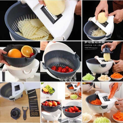 * MÔ TẢ SẢN PHẨM: Dụng cụ nạo rau củ quả kèm rổ 9 trong 1- Cách sử dụng: Cắt rau, rửa rau.