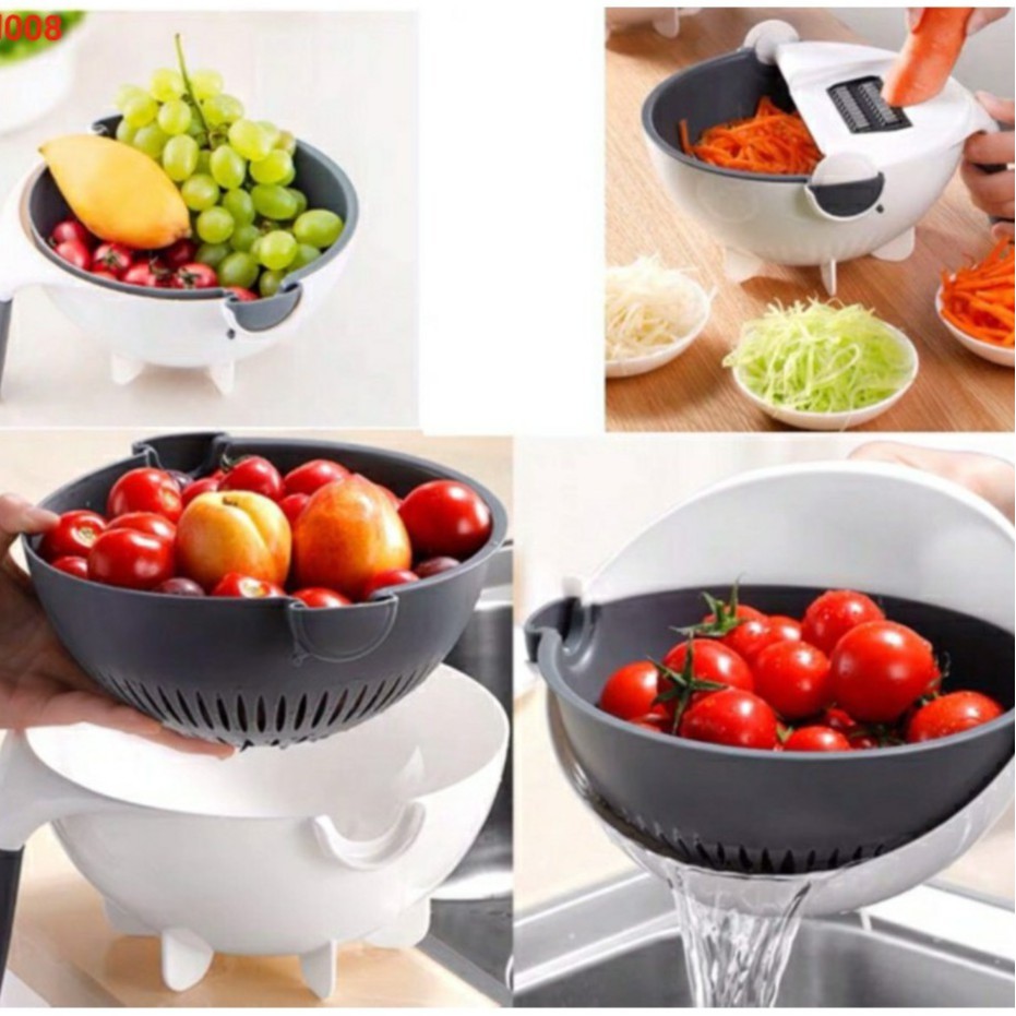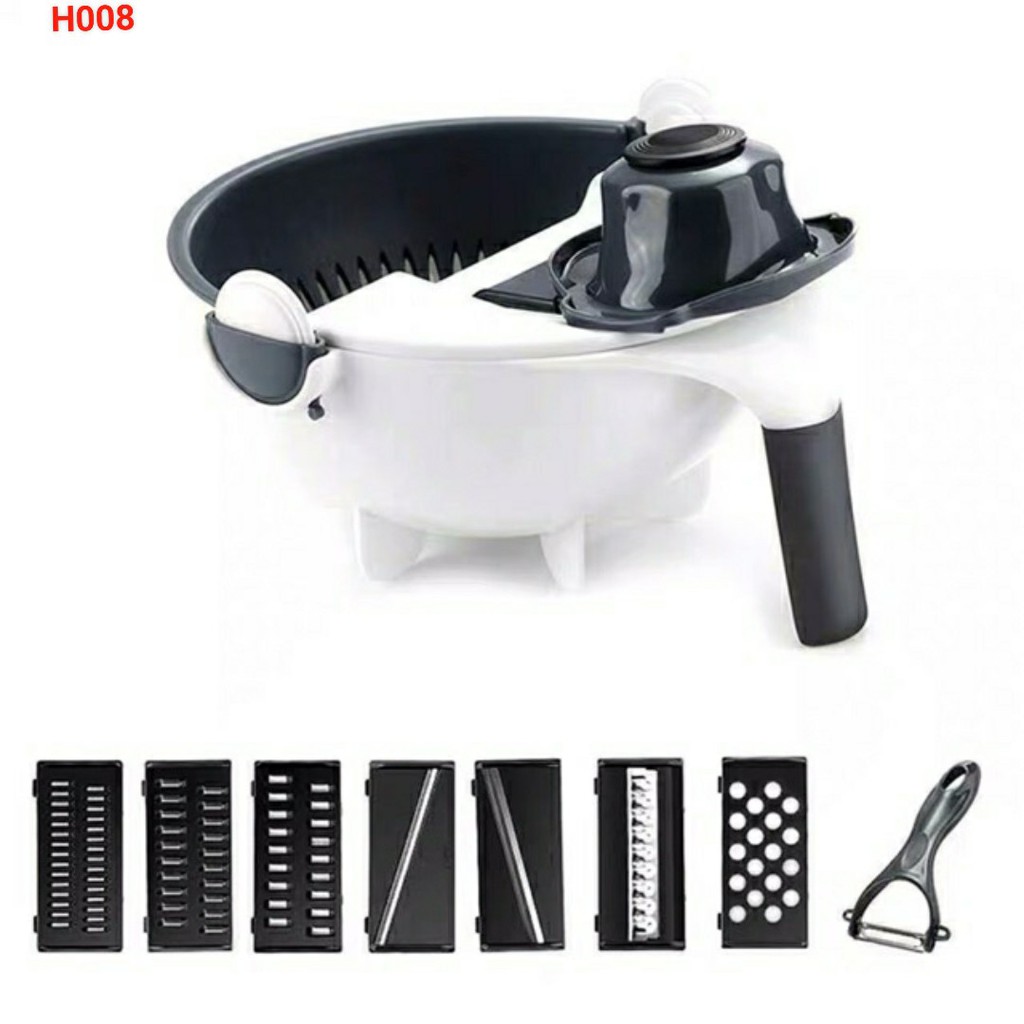 Bộ Dụng Cụ Thông Minh Nạo Rau - Củ - Quả Kèm Rổ 9 Trong 1 Đa Năng- Bộ Dụng Cụ Thông Minh Nạo Rau - Củ - Quả Kèm Rổ 9 Trong 1 Đa Năng thiết kế thông minh, nhỏ gọn và nhiều chức năng với cấu tạo gồm: lưỡi gọt (nạo) vỏ củ quả (củ khoai tây, bầu, bí, cà rốt, mướp, susu…); lưỡi bào (cắt) củ quả thành sợt nhỏ (Bào cà rốt, đu đủ, dừa…); rổ hứng rửa xoay 360 độ không lo bị rơi ra ngoài… giúp việc chế biến các món ăn thật đơn giản và dễ dàng và đẹp mắt.