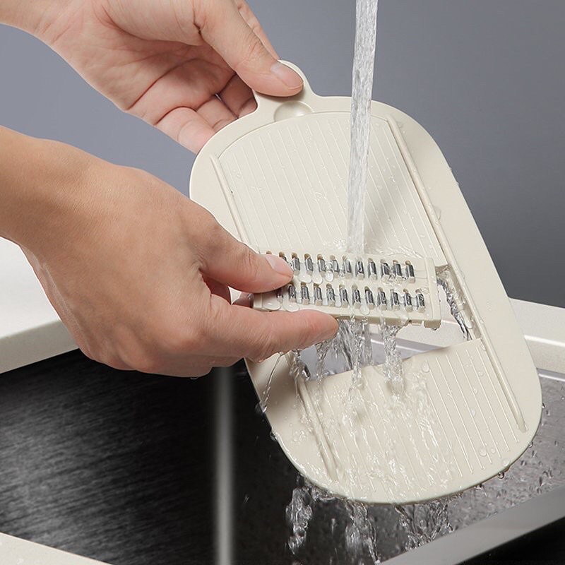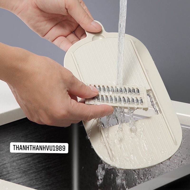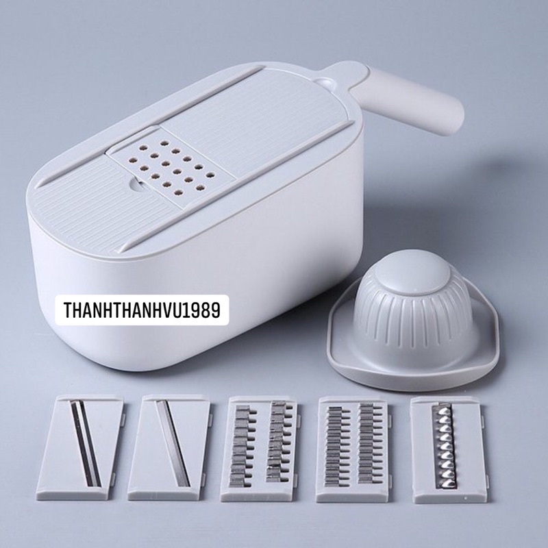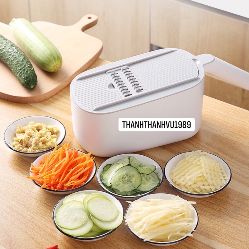 - Dụng cụ bào rau củ đa năng giúp bảo vệ tay,mặt thái,rổ ráo nước,giỏ đựng và 5 mặt bào