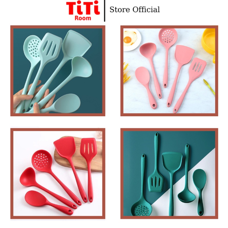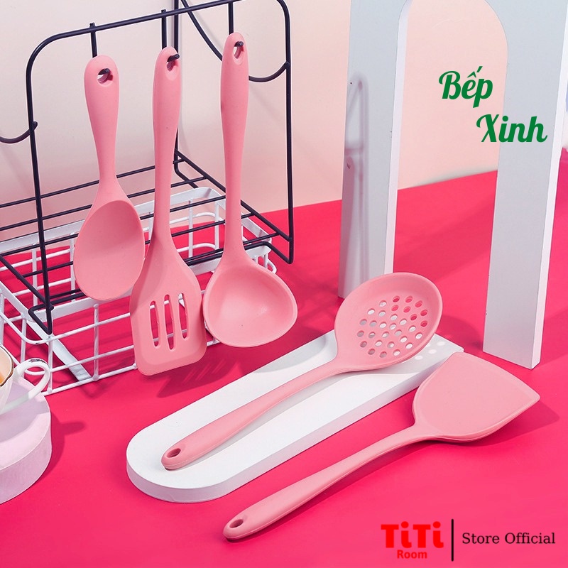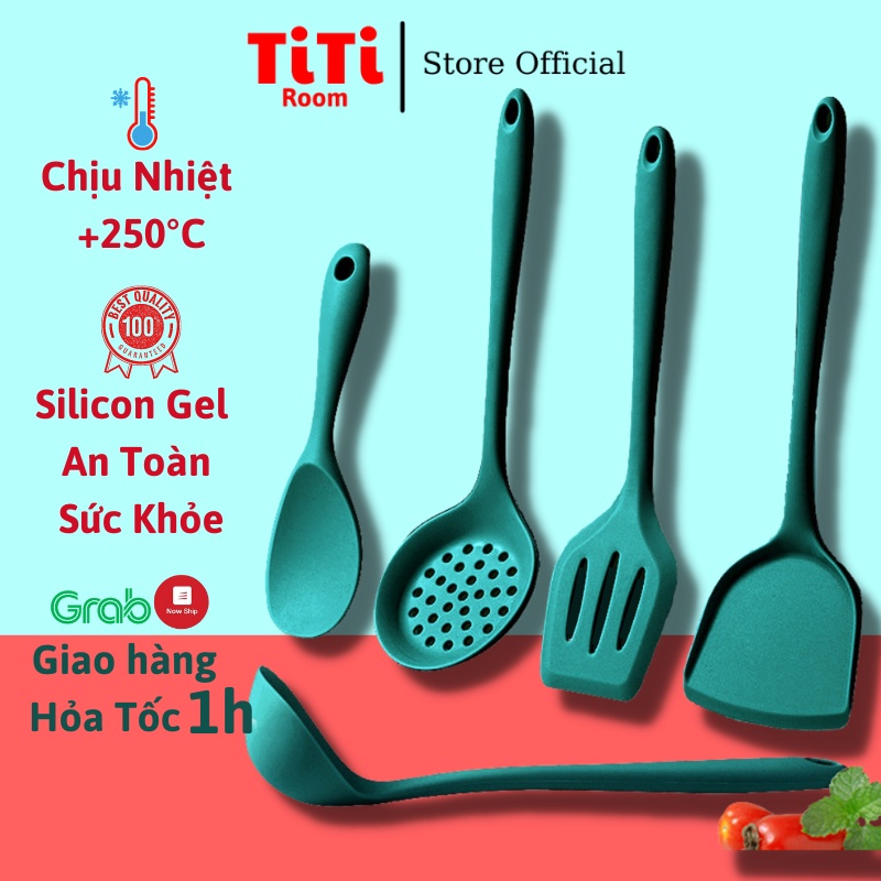 Dụng cụ nấu ăn nhà bếp cao cấp thìa muỗng phới xẻng silicon chịu nhiệt cao chống dính tốt an toàn sức khỏe titiroom
