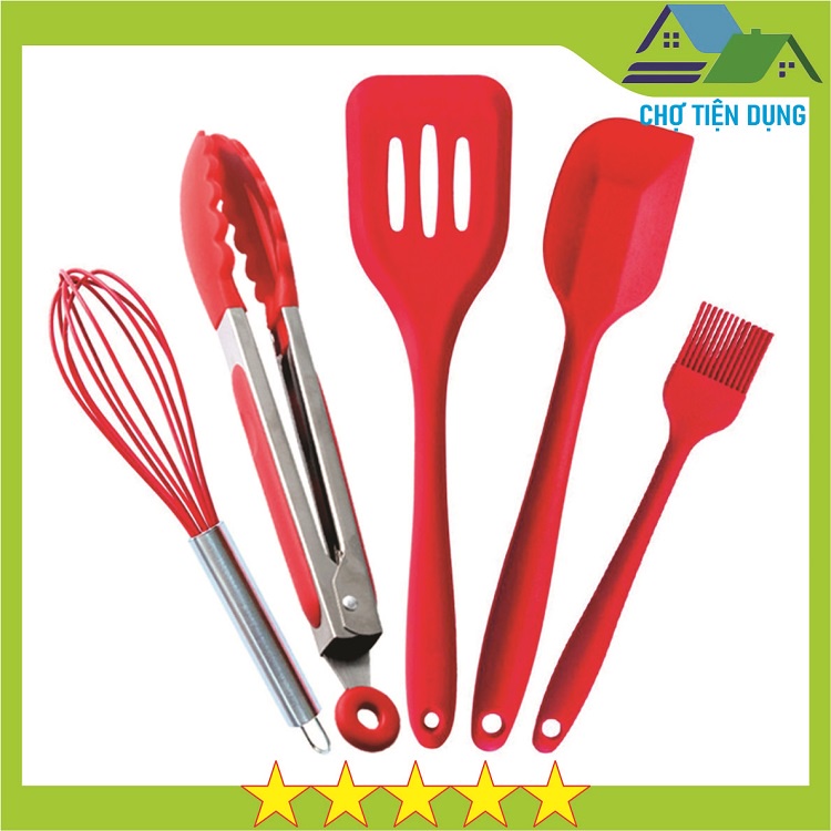 Bộ Dụng Cụ Nấu Ăn Nhà Bếp Combo Set 5 Dụng Cụ Silicon Chịu Nhiệt Cao An Toàn - CBBEP5P