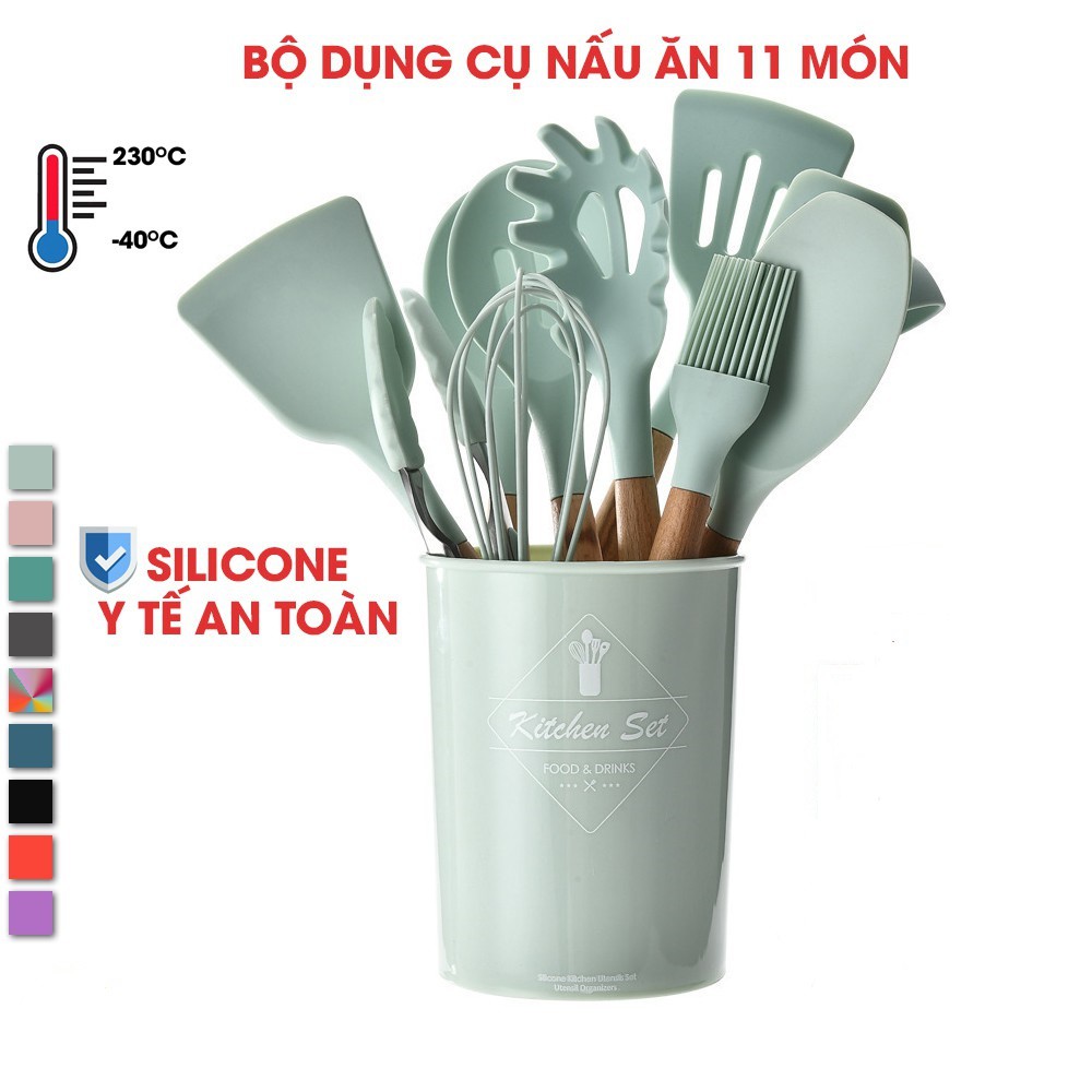Bộ dụng cụ nấu ăn, làm bếp, làm bánh silicon nhiều mầuBộ Dụng Cụ Nấu Ăn Silicone Kitchen Set 11 Món Đa Năng, Có Nhiều Màu Bắt Mắt