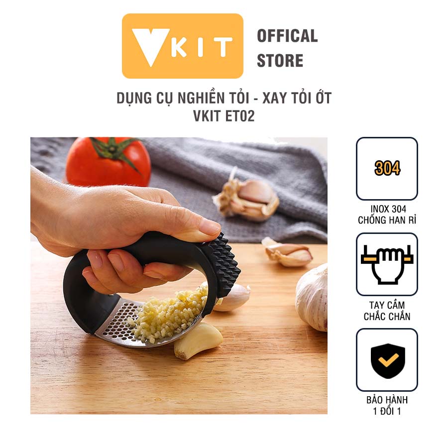 Tên sản phẩm: Dụng cụ nghiền tỏi- xay tỏi ớt cầm tay tiện lợi VKIT ET02Chất liệu : Inox 304 chống han gỉ