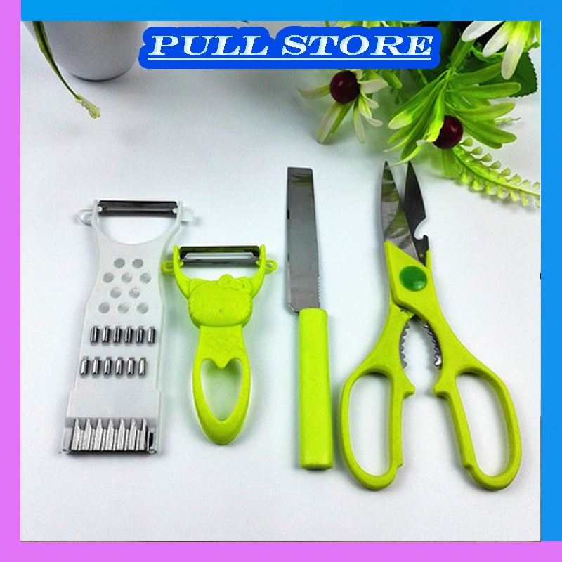 Bộ dụng cụ nhà bếp 4 món đa năng, bộ dao, kéo, nạo tiện dụng DK20