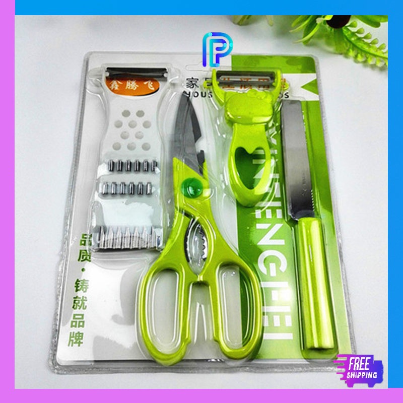 Nhà cửa & Đời sống > Dụng cụ nhà bếp > Bàn nạo, dụng cụ bào, cắt || Bộ dụng cụ nhà bếp 4 món đa năng, bộ dao, kéo, nạo tiện dụng DK20Còn hàng