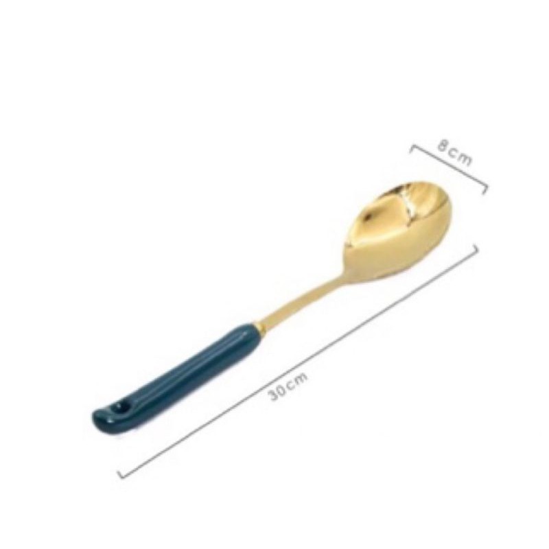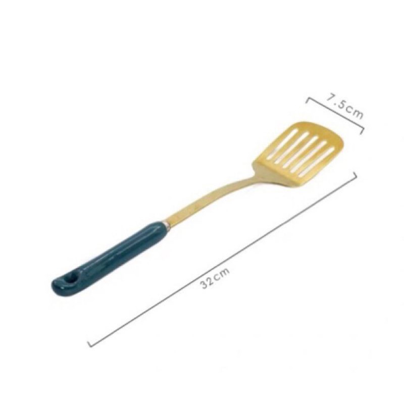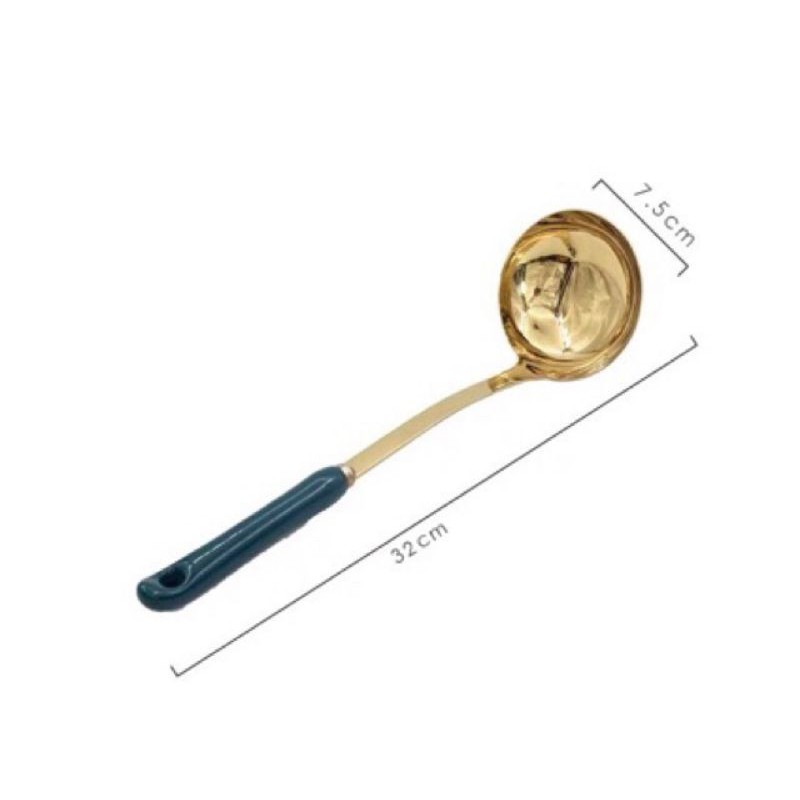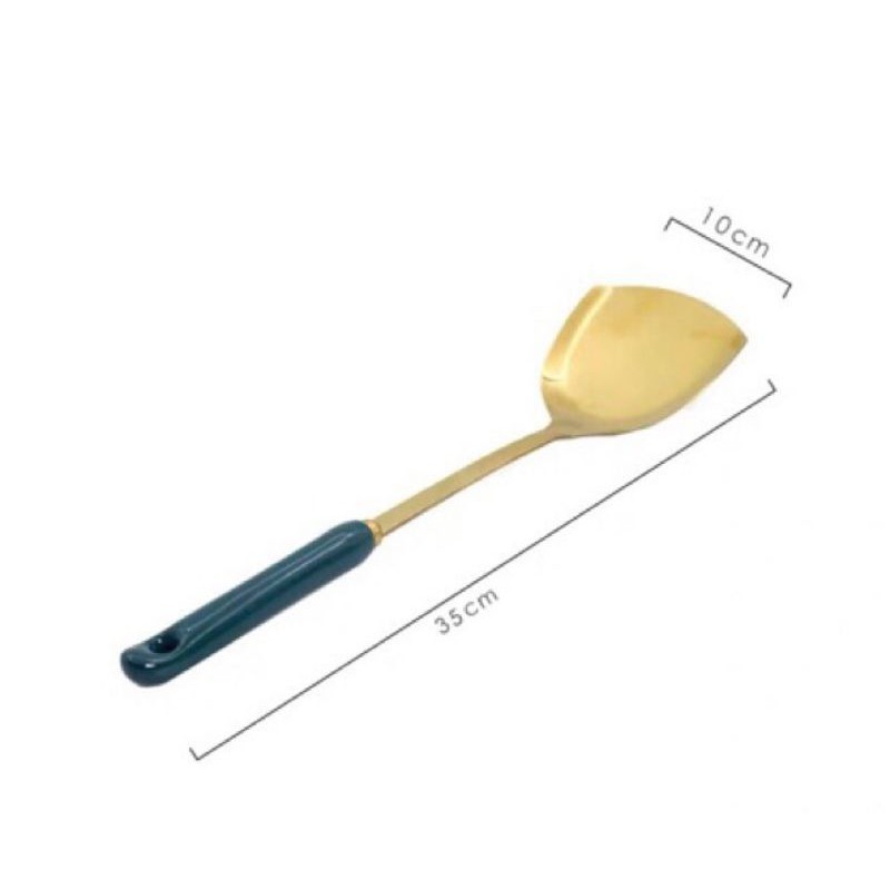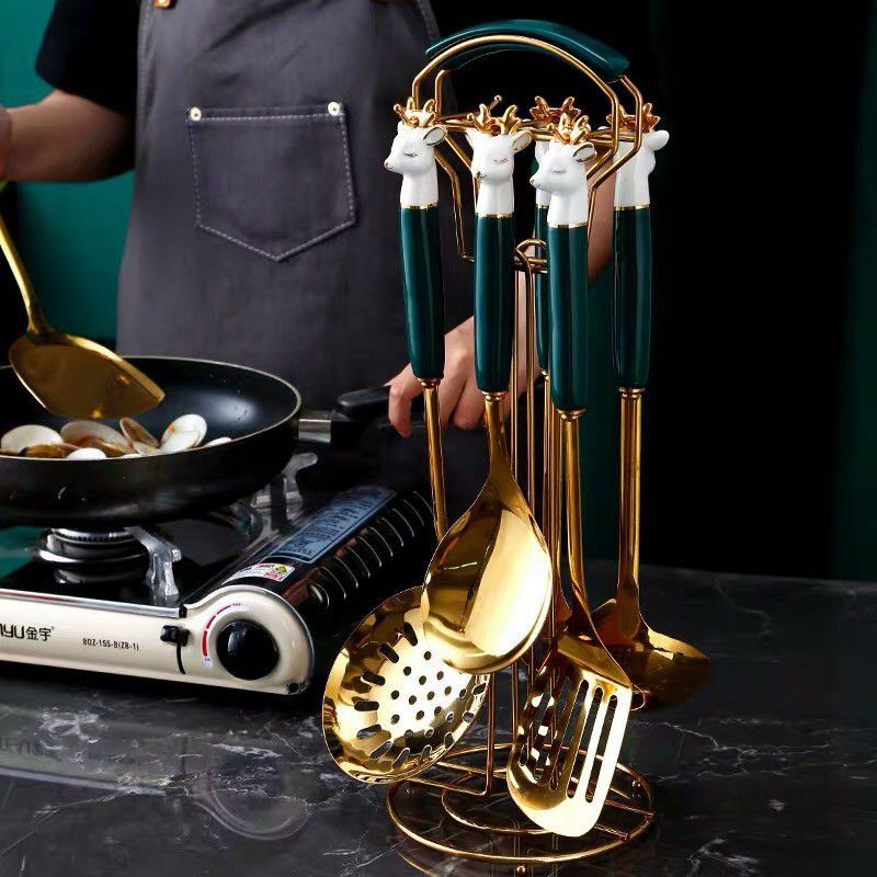- Bộ sản phẩm làm từ chất liệu thép không gỉ được mạ vàng rất sang trọng, cán bằng sứ cách nhiệt chống nóng trong quá trình chế biến và nấu ăn.