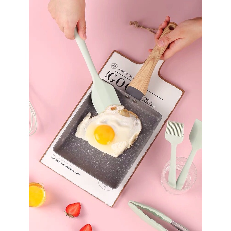 - Bộ dụng cụ bếp silicon, nấu ăn làm bánh 5 món chịu nhiệt cao với các tone màu Hồng Pastel, Xanh Mint dễ sử dụng giúp bạn có thể có được những bộ nấu ăn hoàn hảo cho căn bếp