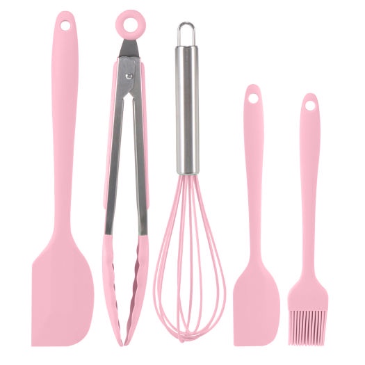 Nhà cửa & Đời sống > Dụng cụ nhà bếp > Lò nướng & phụ kiện || Bộ dụng cụ nhà bếp bằng silicon chịu nhiệt cao nấu ăn màu hồng cán bạc cho nhà bếpCòn hàng