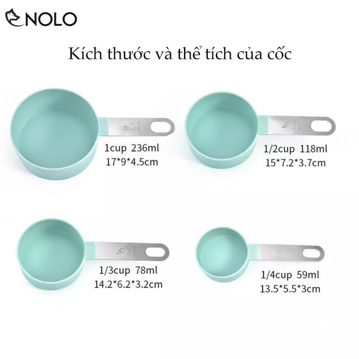 Giới thiệu Dụng Cụ Nhà Bếp Bộ 4 Cốc Đo Lường Nguyên Liệu Làm Bánh Làm Thức Ăn Có Vạch Chia Thể Tích Trên Tay Cầm