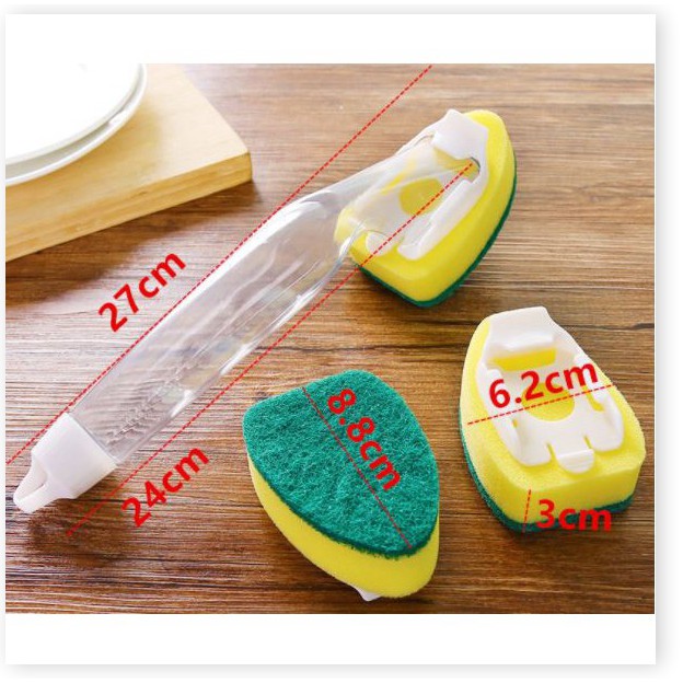 + Sử dụng dễ dàng: tháo miếng cọ, đổ nước rửa vào phần chứa ở tay cầm, lắp lại & không lo hết nước rửa.