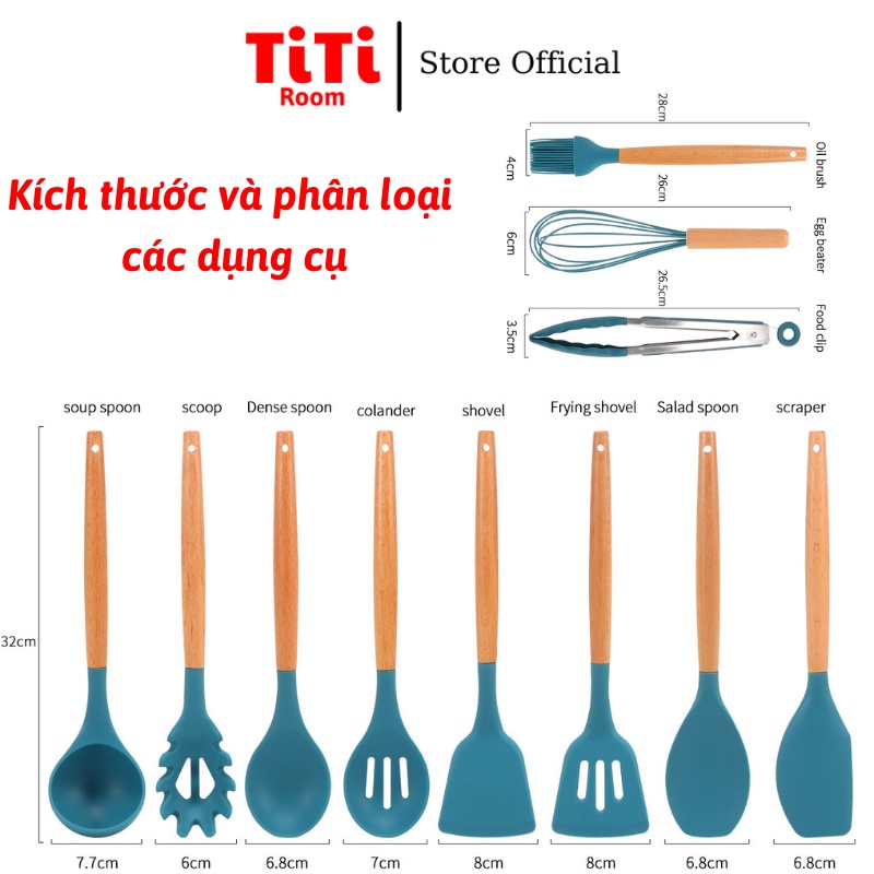 Bộ dụng cụ nhà bếp làm bánh nấu ăn Kitchenware 11 món chống dính silicon chịu nhiệt cao phong cách Hàn Quốc mà Bếp nào cũng cần:* ƯU ĐIỂM :