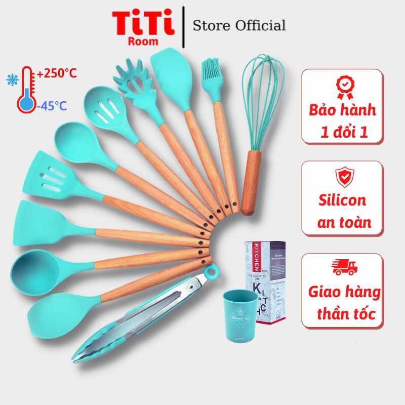 Bộ dụng cụ nhà bếp làm bánh nấu ăn Kitchenware 11 món chống dính silicon chịu nhiệt cao phong cách Hàn Quốc
